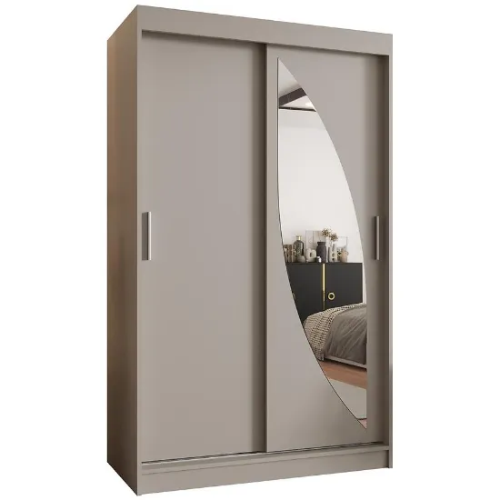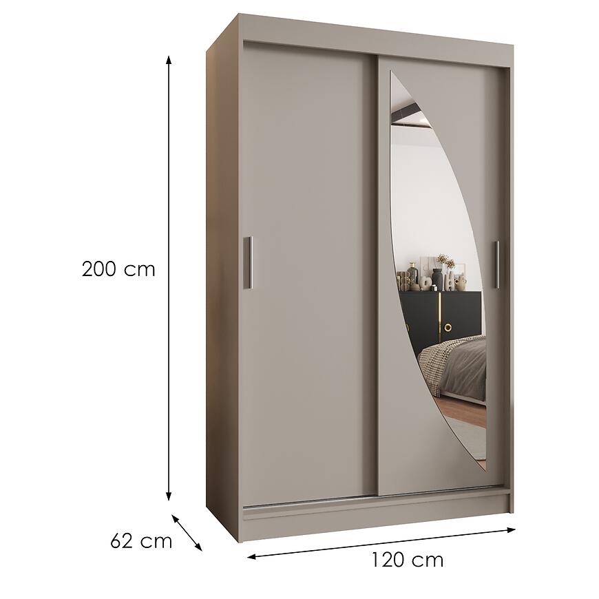Szafa posiada dwudrzwiowy system przesuwny, który umożliwia wygodne korzystanie z mebla nawet w mniejszych przestrzeniach. Drzwi przesuwne poruszają się płynnie i cicho, dzięki czemu korzystanie z szafy jest komfortowe i bezproblemowe. Takie rozwiązanie eliminuje problem otwierania drzwi na zewnątrz, co jest szczególnie wygodne w ciasnych pomieszczeniach.