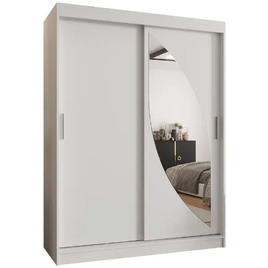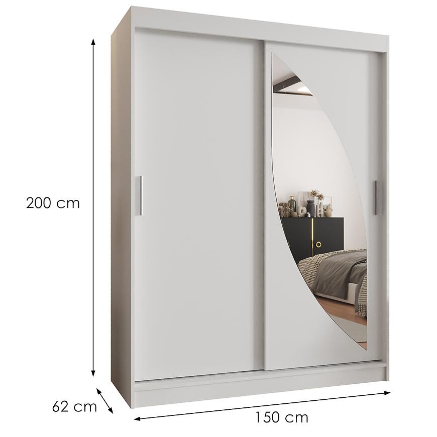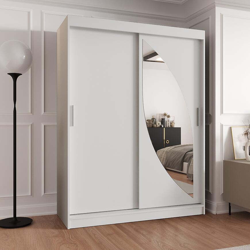 Szafa Milo 150 biały łączy przemyślaną funkcjonalność z nowoczesnym designem. Przesuwne drzwi, przestronne wnętrze z półkami i drążkiem, solidna konstrukcja oraz eleganckie, matowe wykończenie czynią ją praktycznym i atrakcyjnym meblem, który długo zachowa swój estetyczny wygląd.