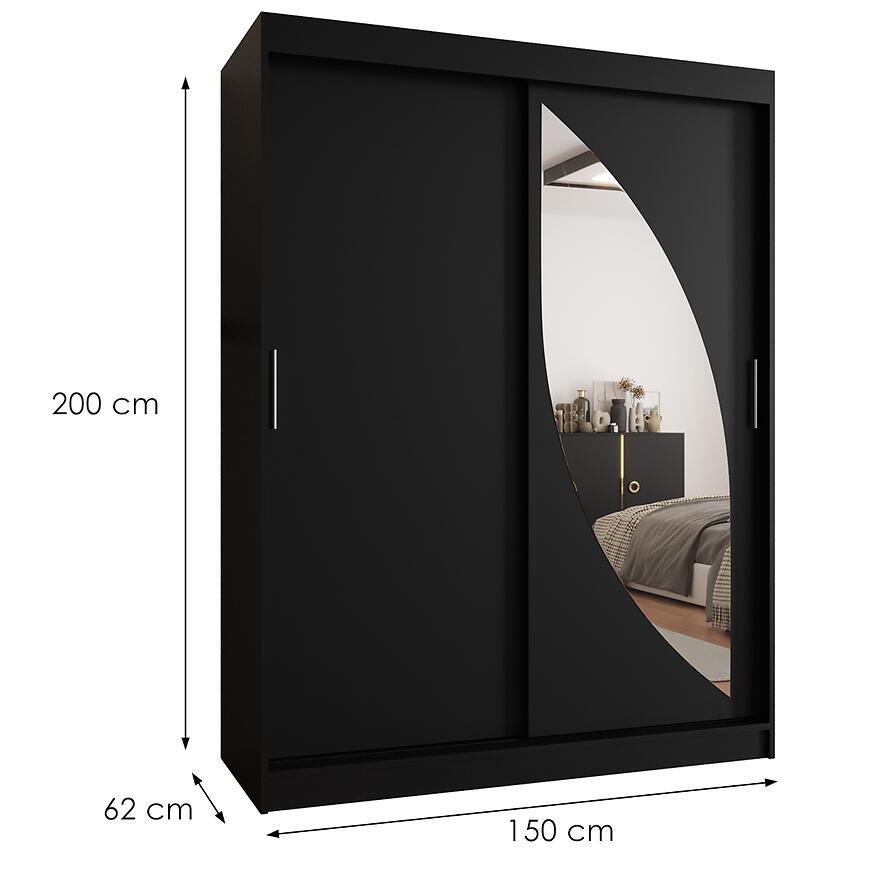 Szafa Milo 150 czarny to praktyczny, elegancki i trwały mebel, który łączy funkcjonalne wnętrze z nowoczesnym designem. Przesuwne drzwi, pojemne wnętrze oraz solidna konstrukcja sprawiają, że szafa jest wygodna w użytkowaniu i długo utrzymuje estetyczny wygląd.