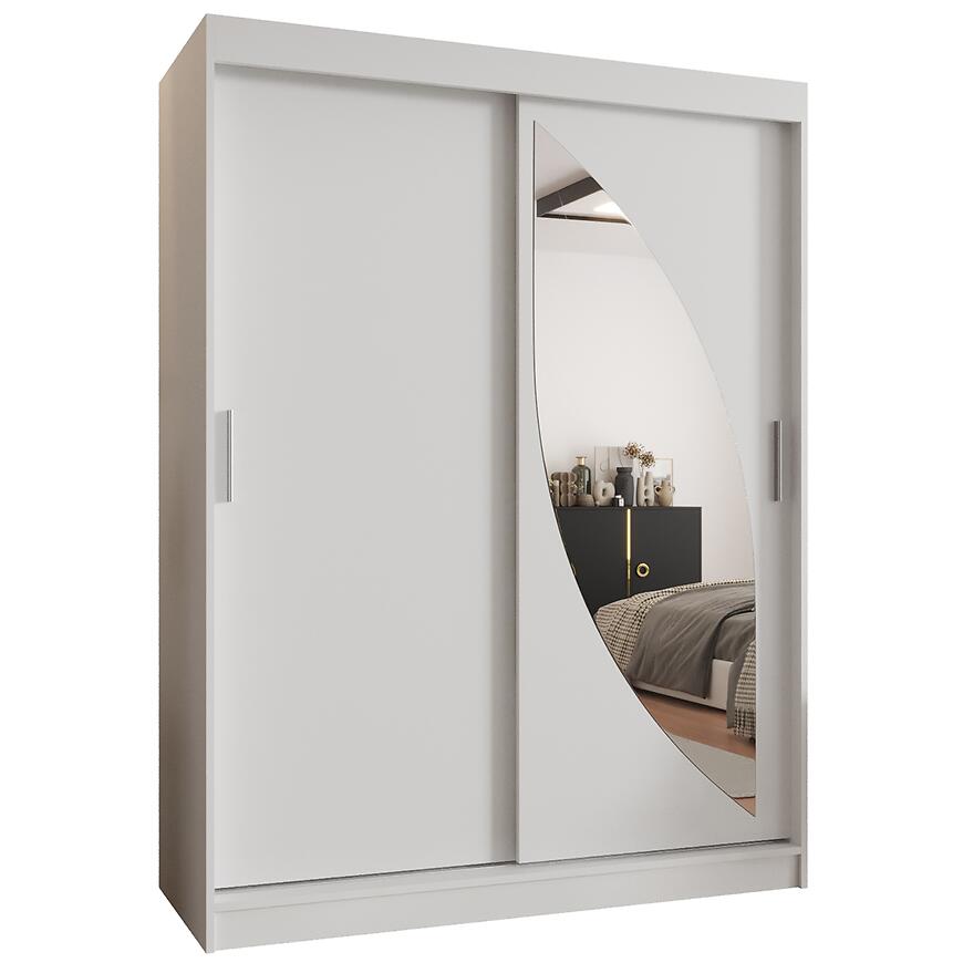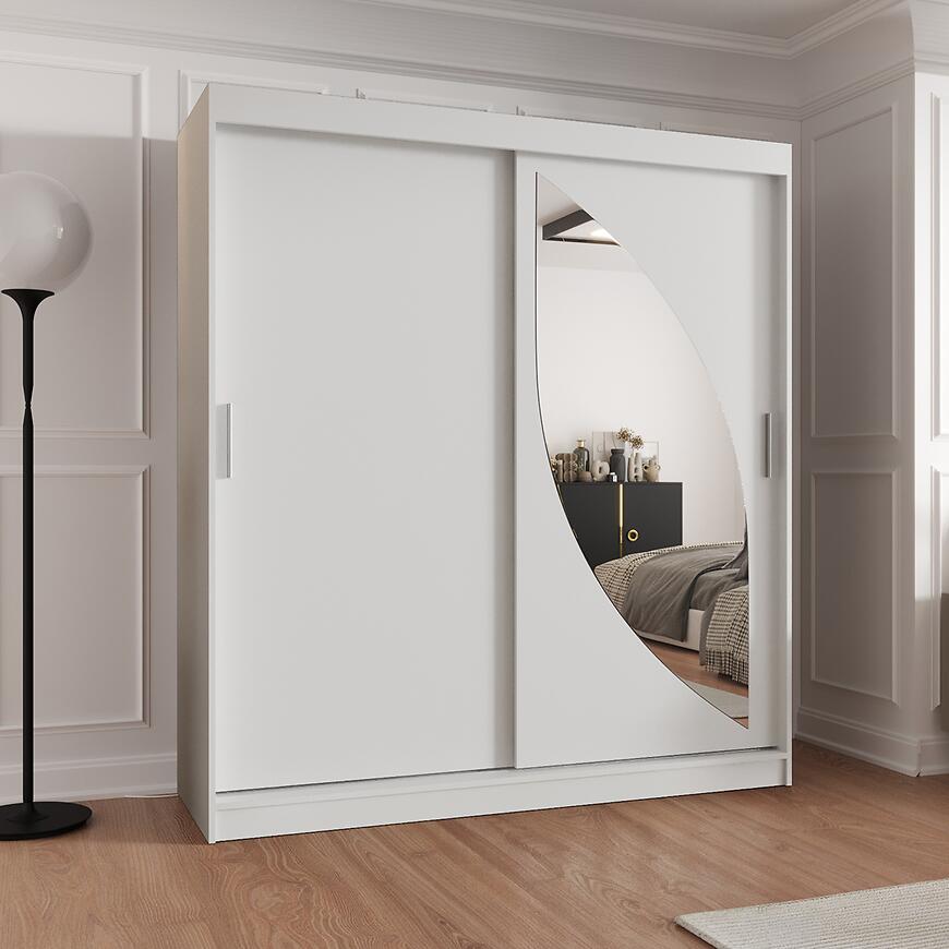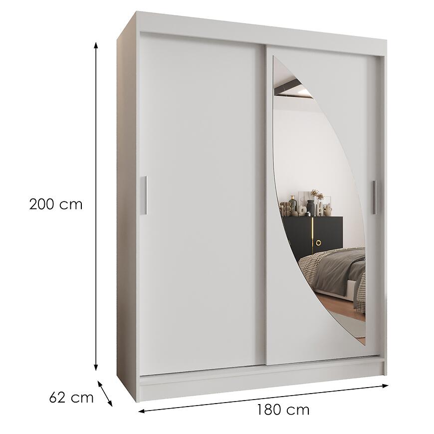Szafa Milo 180 w kolorze białym łączy w sobie przestronność, nowoczesny design i praktyczne rozwiązania. Jej jednolity biały odcień frontów i korpusu sprawia, że szafa wygląda lekko i świeżo, wprowadzając do wnętrza poczucie harmonii i porządku. Matowe wykończenie zapewnia subtelny efekt estetyczny, jednocześnie minimalizując widoczność odcisków palców i drobnych zabrudzeń.