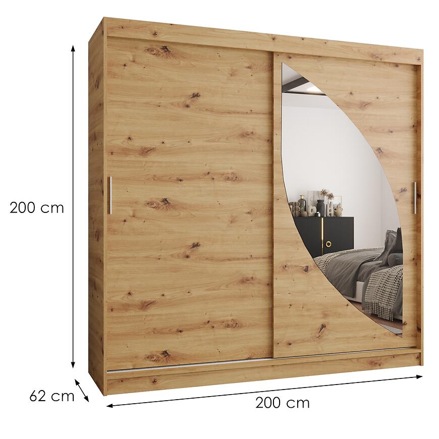 Szafa przesuwna 200 cm dąb artisan z lustrem