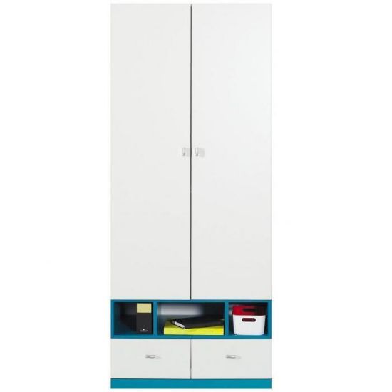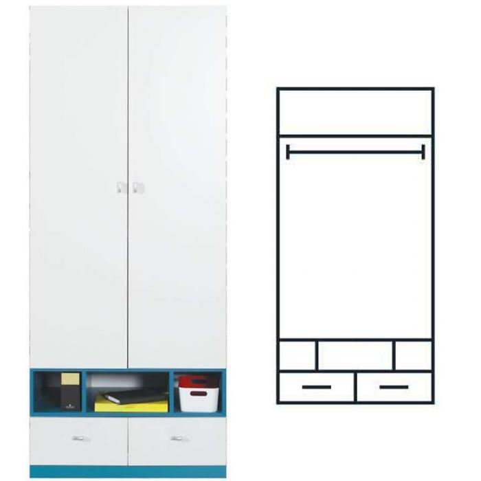 Szafa na ubrania Mobi z uchylnymi drzwiami to praktyczny mebel do pokoju młodzieżowego. Kolor mebla wpasuje się w wiele aranżacji. Będzie pasowała do wnętrz klasycznych jak również do wnętrz nowoczesnych. Szafa sprawdzi się w danym pomieszczeniu. To szafa, która posiada półki, szuflady oraz drążek do wieszania ubrań, na którym powiesisz nawet długie ubrania. Płyta laminowana to płyta z której został wykonany mebel. Pojemna szafa to dobre rozwiązanie, żeby schować to czego potrzebujesz. Do szafy na ubrania można dokupić inne meble z kolekcji Mobi.