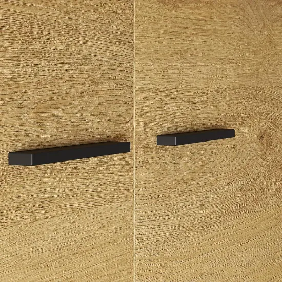 Kolekcja mebli do pokoju dziennego Modesto to harmonijne połączenie stylu i funkcjonalności, które idealnie wpisuje się w nowoczesne wnętrza. Wykonana z wysokiej jakości płyty wiórowej laminowanej, cechuje się trwałością i odpornością na codzienne użytkowanie. Wyjątkowy dekor dąb stylowy w zestawieniu z elegancką czernią nadaje meblom ponadczasowy charakter i subtelną elegancję. Matowe wykończenie frontów i korpusów podkreśla nowoczesny design kolekcji, sprawiając, że stanowi ona doskonałe dopełnienie współczesnych aranżacji.