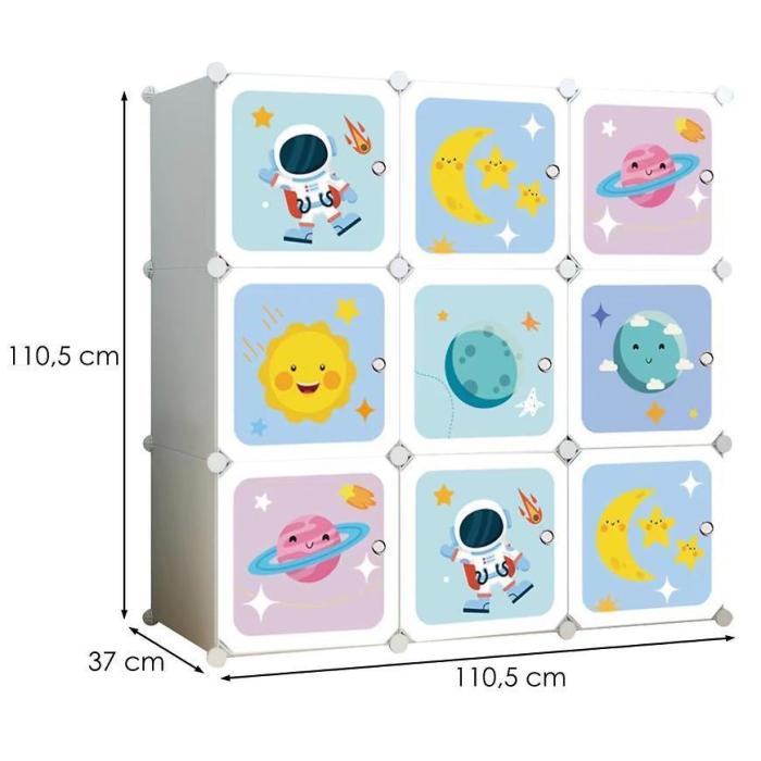 Szafa z kolekcji Kosmos to propozycja do pokoju dziecięcego, ale znajdzie swoje miejsce również w innym pomieszczeniu, jak na przykład - przedpokój. Materiał wykonania to płyta MDF i metalowy stelaż. Szafa posiada kilka drzwi co ułatwia dostęp. Nowoczesny styl mebli wpadnie do gustu każdemu dziecku, kto poszukuje klasycznego, a zarazem ciekawego umeblowania. Idealnie wpasuje się w większość aranżacji. Przeznaczona do samodzielnego montażu.