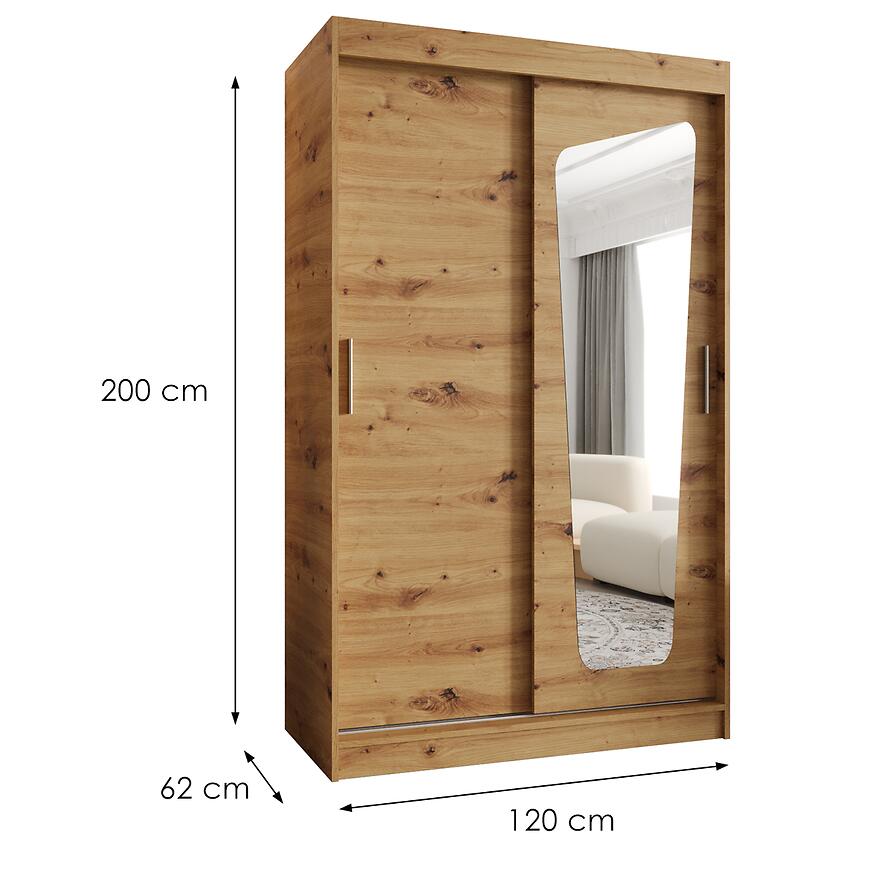 Szafa przesuwna 120 cm dąb artisan z lustrem