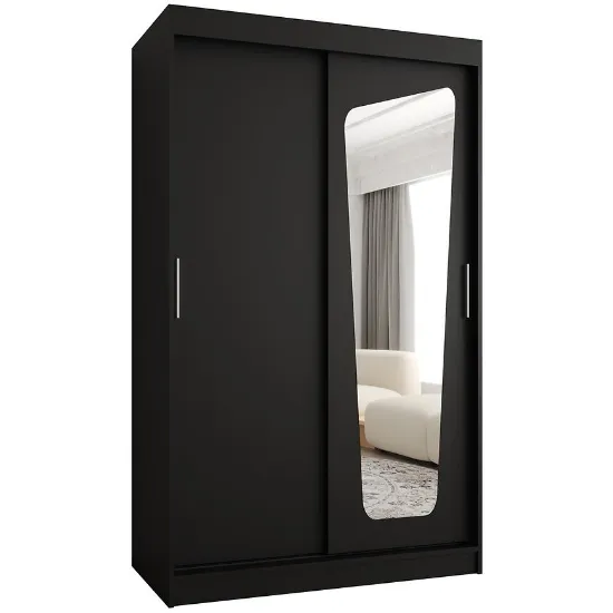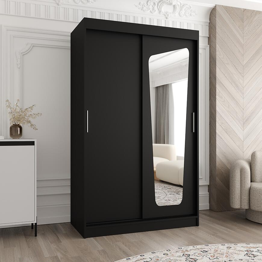 Szafa Moka 120 czarny to przemyślany wybór dla osób poszukujących pojemnej, estetycznej i nowoczesnej szafy przesuwnej, która podkreśli charakter wnętrza i zapewni wygodne przechowywanie każdego dnia.