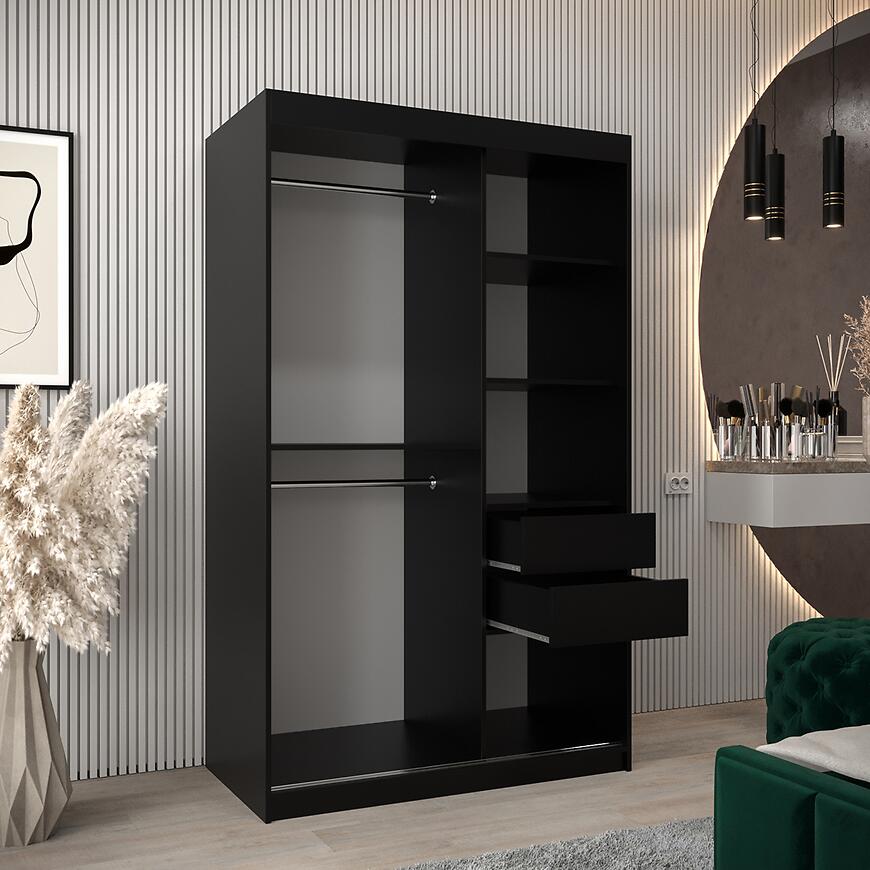 Czarna szafa przesuwna 120 cm do sypialni i garderoby