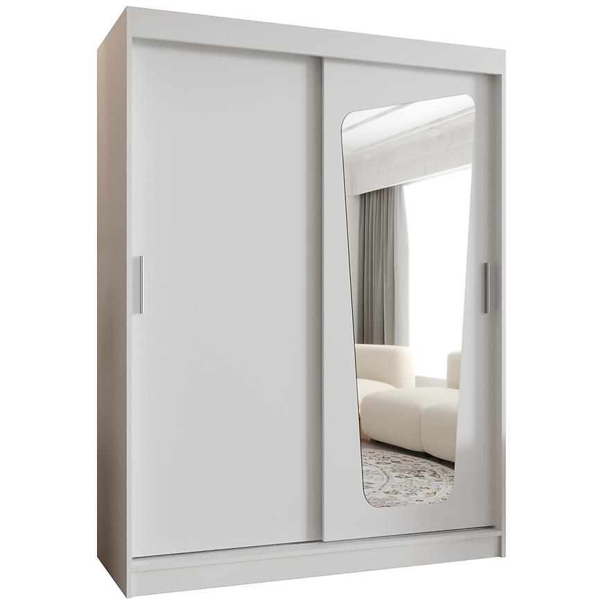 Nowoczesna biała szafa z lustrem doskonale współgra z jasnymi ścianami, drewnianymi dodatkami oraz neutralnymi tekstyliami. Szafa Moka 150 biały to praktyczny wybór dla osób poszukujących pojemnej, estetycznej i uniwersalnej szafy przesuwnej, która harmonijnie wpisze się w wystrój współczesnego wnętrza.