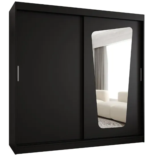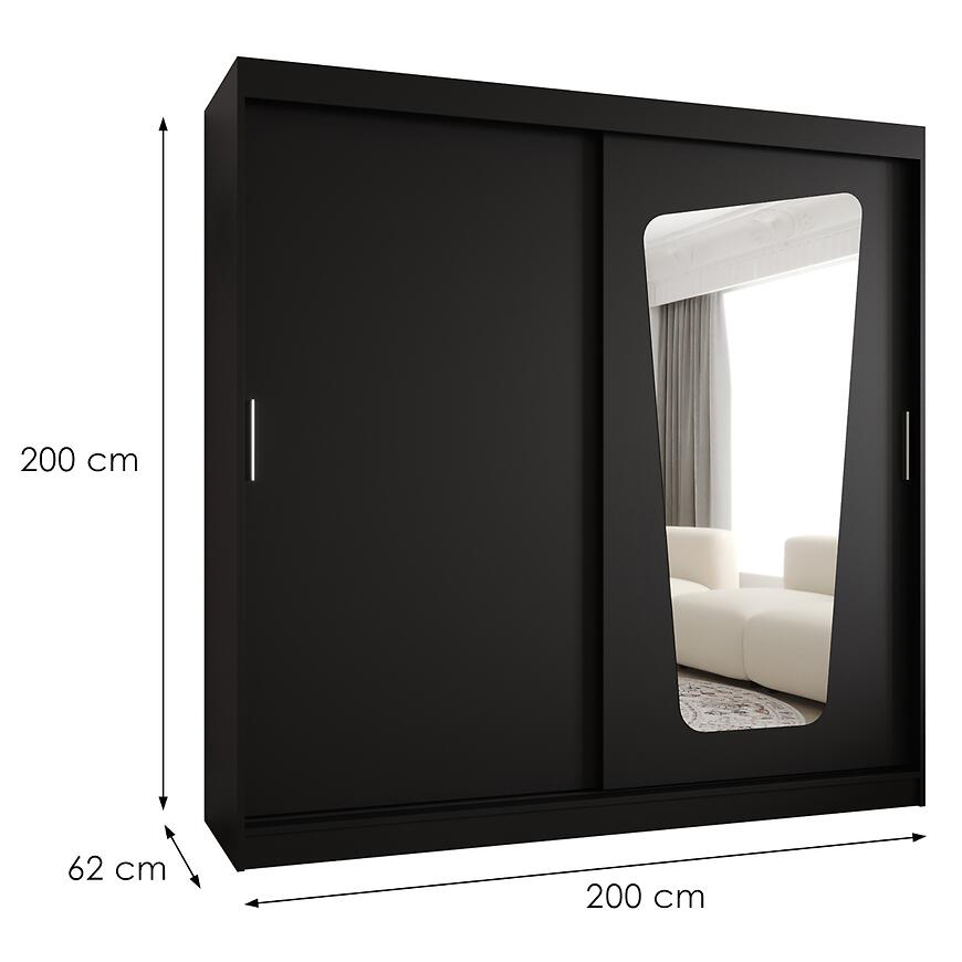 Czarna szafa przesuwna 200 cm z lustrem do sypialni i garderoby