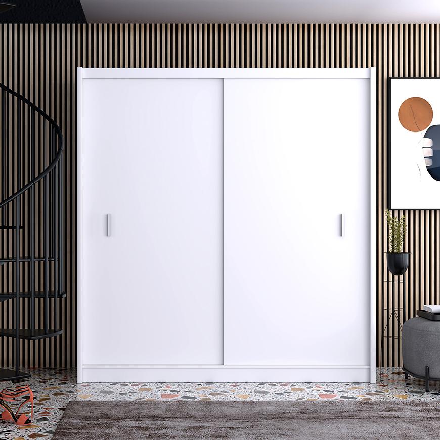 Szafa Multi 203 to nowoczesne i funkcjonalne rozwiązanie do przechowywania, które idealnie sprawdzi się w każdym wnętrzu, szczególnie w sypialniach, przedpokojach i garderobach. Dzięki przesuwnym drzwiom szafa oferuje oszczędność miejsca, co jest szczególnie ważne w mniejszych pomieszczeniach. Mechanizm ten zapewnia płynne i ciche otwieranie, a dzięki dwudrzwiowej konstrukcji dostęp do wnętrza szafy jest niezwykle wygodny.