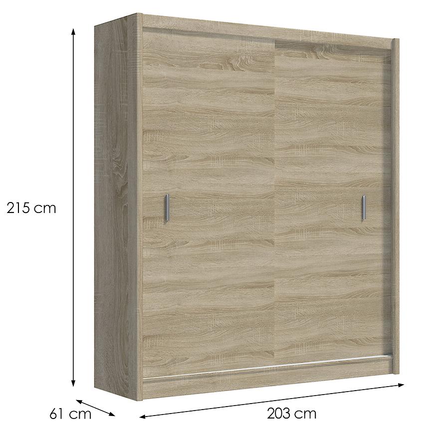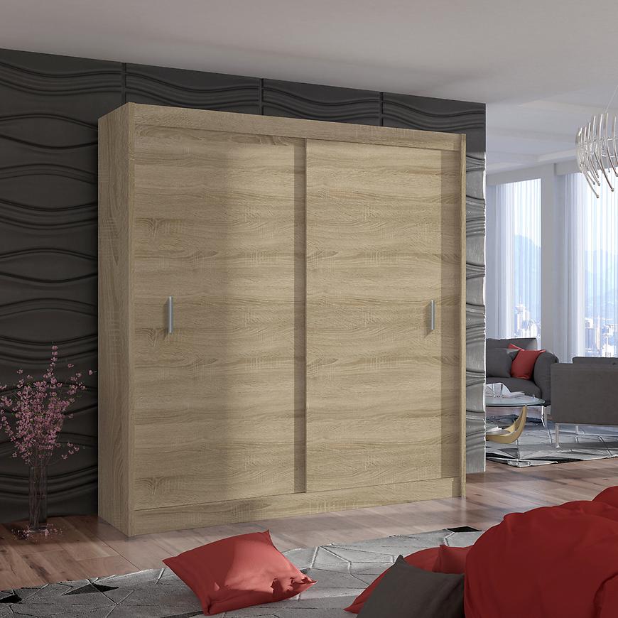 Szafa Multi 203 to nowoczesne i funkcjonalne rozwiązanie do przechowywania, które idealnie sprawdzi się w każdym wnętrzu, szczególnie w sypialniach, przedpokojach i garderobach. Dzięki przesuwnym drzwiom szafa oferuje oszczędność miejsca, co jest szczególnie ważne w mniejszych pomieszczeniach. Mechanizm ten zapewnia płynne i ciche otwieranie, a dzięki dwudrzwiowej konstrukcji dostęp do wnętrza szafy jest niezwykle wygodny.