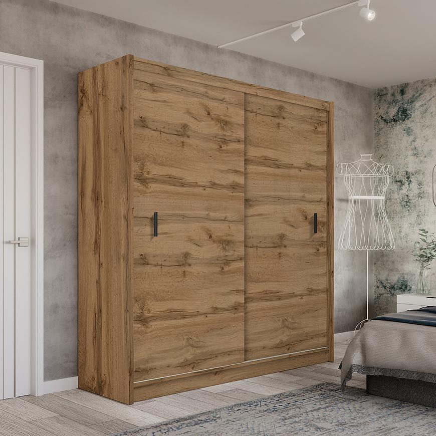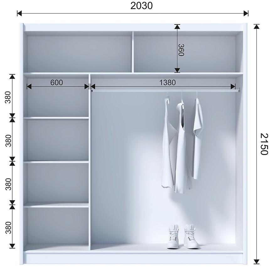 Szafa Multi 203 to nowoczesne i funkcjonalne rozwiązanie do przechowywania, które idealnie sprawdzi się w każdym wnętrzu, szczególnie w sypialniach, przedpokojach i garderobach. Dzięki przesuwnym drzwiom szafa oferuje oszczędność miejsca, co jest szczególnie ważne w mniejszych pomieszczeniach. Mechanizm ten zapewnia płynne i ciche otwieranie, a dzięki dwudrzwiowej konstrukcji dostęp do wnętrza szafy jest niezwykle wygodny.