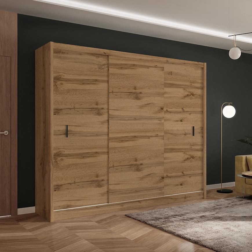 Szafa Multi 250 to nowoczesne i funkcjonalne rozwiązanie do przechowywania, które idealnie sprawdzi się w każdym wnętrzu, szczególnie w sypialniach, przedpokojach i garderobach. Dzięki przesuwnym drzwiom szafa oferuje oszczędność miejsca, co jest szczególnie ważne w mniejszych pomieszczeniach. Mechanizm ten zapewnia płynne i ciche otwieranie, a dzięki dwudrzwiowej konstrukcji dostęp do wnętrza szafy jest niezwykle wygodny.