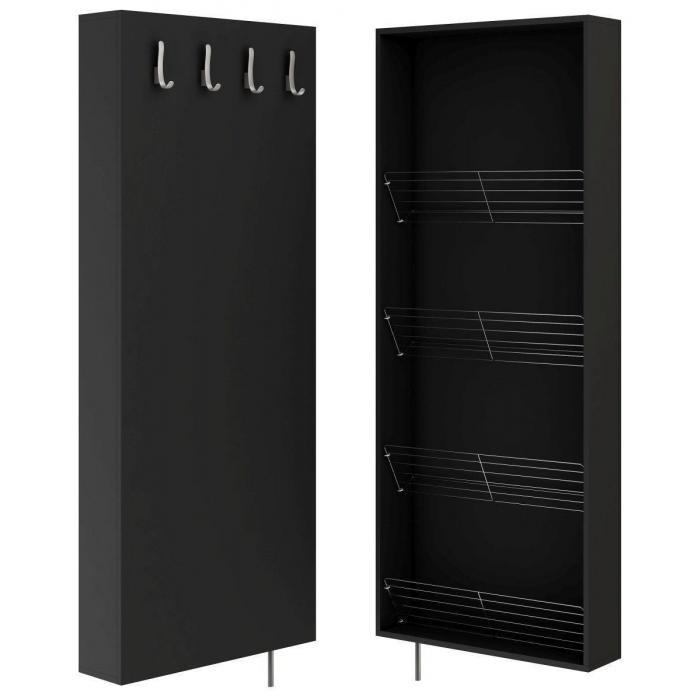 Wykonanie (materiały): płyta meblowa 18mm, obrzeże ABS 1mm, stalowe półki na buty, system obrotowy - stal nierdzewna