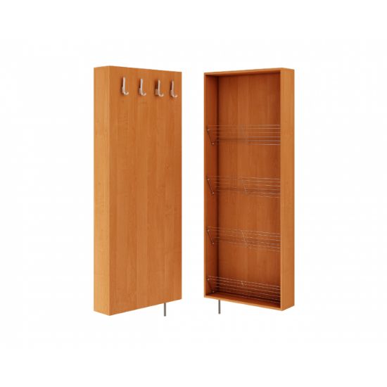 Szafka na buty 4W4P raz na zawsze rozwiąże Twoje problemy z przechowywaniem nie tylko obuwia, ale również okryć wierzchnich! Jest to bowiem innowacyjna szafka obrotowa do przedpokoju – z jednej strony posiada cztery stalowe półki na buty (zmieści się na nich około dwunastu par obuwia), zaś z drugiej przymocowano cztery wieszaki na kurtki i płaszcze. Całość montuje się do ściany i podpiera na solidnej stalowej nóżce. Szafka na buty 4W4P wykonana została z bardzo wytrzymałej płyty meblowej o grubości 18 mm z obrzeżem typu ABS. Może otwierać się na prawą lub na lewą stronę – można łatwo wkomponować ją w aranżację każdego przedpokoju!