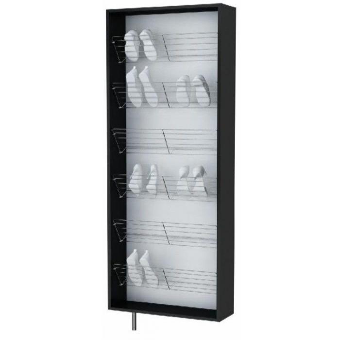 Wykonanie (materiały): płyta meblowa 18mm, obrzeże ABS 1mm, stalowe półki na buty, system obrotowy - stal nierdzewna