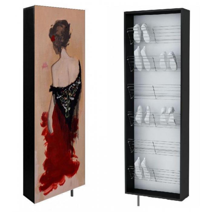 Raz na zawsze zapomnij o kłopotach z przechowywaniem obuwia! Obrotowa szafa na buty zapewni Ci mnóstwo miejsca na buty należące do wszystkich domowników! Szafa na buty do przedpokoju montowana jest bezpośrednio do ściany, a dodatkowej stabilizacji nadaje jej smukła stalowa nóżka. Wykonana została z bardzo solidnej płyty meblowej o grubości 18 mm, wykończonej obrzeżem typu ABS o grubości 1 mm. Szafa na buty posiada aż sześć stalowych, ergonomicznie zaprojektowanych półek, na których zmieści się kilkanaście par butów. To mebel, którzy pokochają miłośnicy funkcjonalności i stylowego designu.