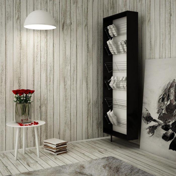 - Wykonanie (materiały): płyta meblowa 18mm, obrzeże ABS 1mm, stalowe półki na buty, system obrotowy - stal nierdzewna