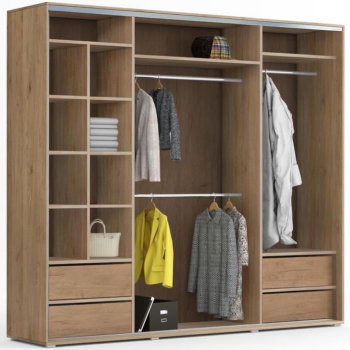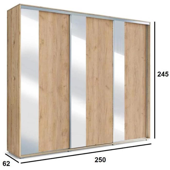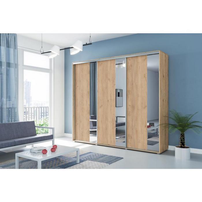 Szafa przesuwna Nadia z lustrem to praktyczny mebel do sypialni czy przedpokoju, może posłużyć również jako garderoba. Kolor mebla wpasuje się w wiele aranżacji. Mebel będzie pasował do wnętrz klasycznych jak również do wnętrz nowoczesnych. To duża szafa, która posiada półki oraz drążki do wieszania ubrań, na których powiesisz nawet długie ubrania. Pojemna szafa to dobre rozwiązanie, żeby schować to czego potrzebujesz. Szafa z lustrem sprawdzi się z pewnością w danym pomieszczeniu. Kontenerek z szufladami do szafy jest dostępny za dopłatą.