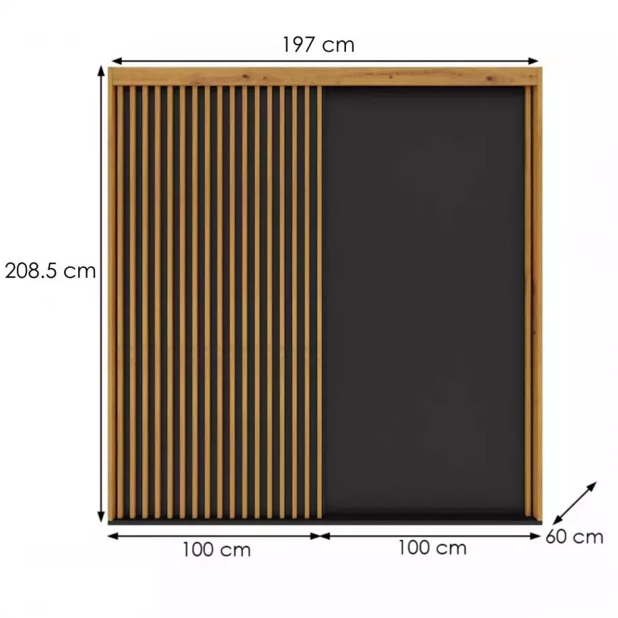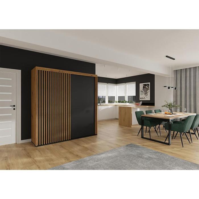 Szafa dwudrzwiowa NAIROBI to doskonała propozycja do sypialni, a także do przedpokoju czy pokoju dziennego. Korpus szafy wykonany w kolorze dąb artisan, a fronty w kolorze dąb artisan i czarnym. Całość w matowym wykończeniu.