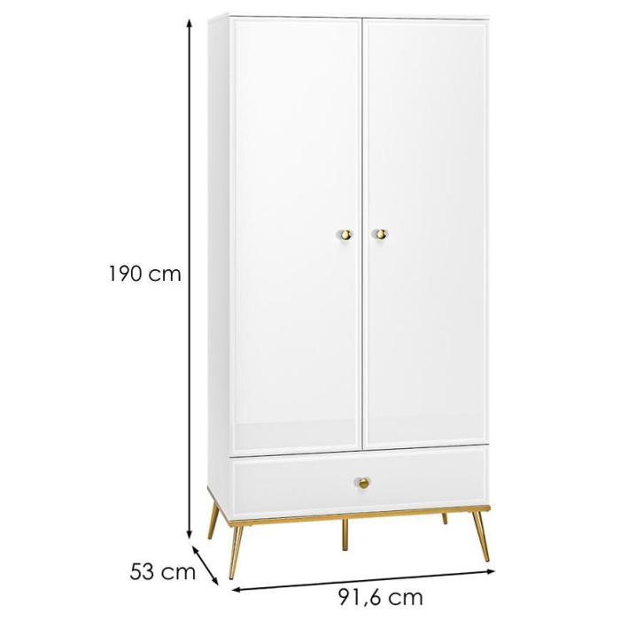 Szafa dwudrzwiowa GOLDIN to doskonała propozycja do sypialni, a także do przedpokoju czy pokoju dziennego. Korpus i fronty szafy wykonane w kolorze białym. Całość wykonana w połysku.