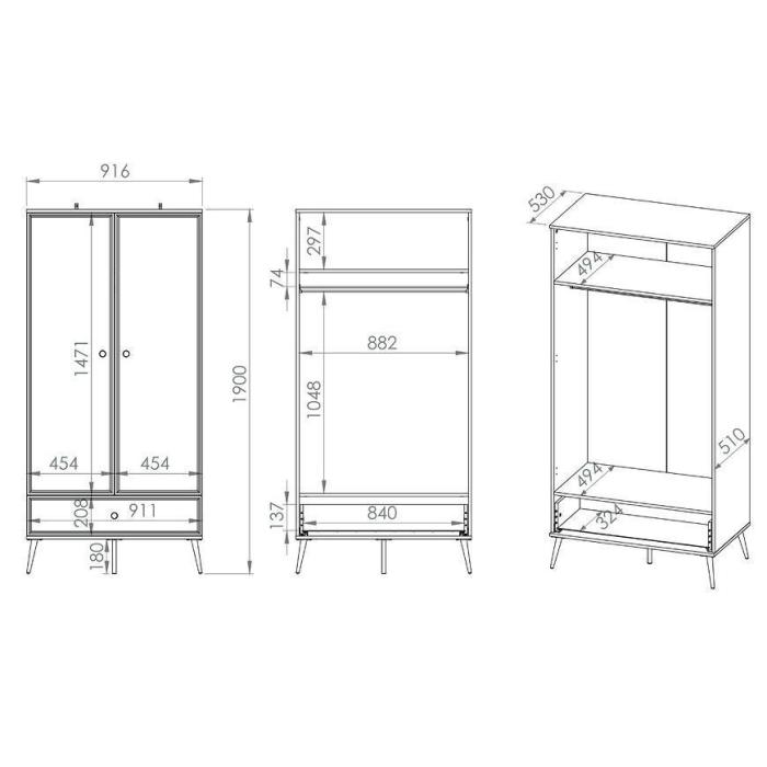 Mebel wykonano z odpornej płyty wiórowej laminowanej. Dzięki czemu posłuży przez wiele lat. Dzięki swojemu wybarwieniu nada ponadczasowego i atrakcyjnego wyglądu naszemu wnętrzu. Idealnie wpisze sie w aranżacje w stylu glamour. Szafa posiada wygodne w użytkowaniu drzwi klasyczne. W środku mamy dużo miejsca do przechowywania rzeczy i ubrań.