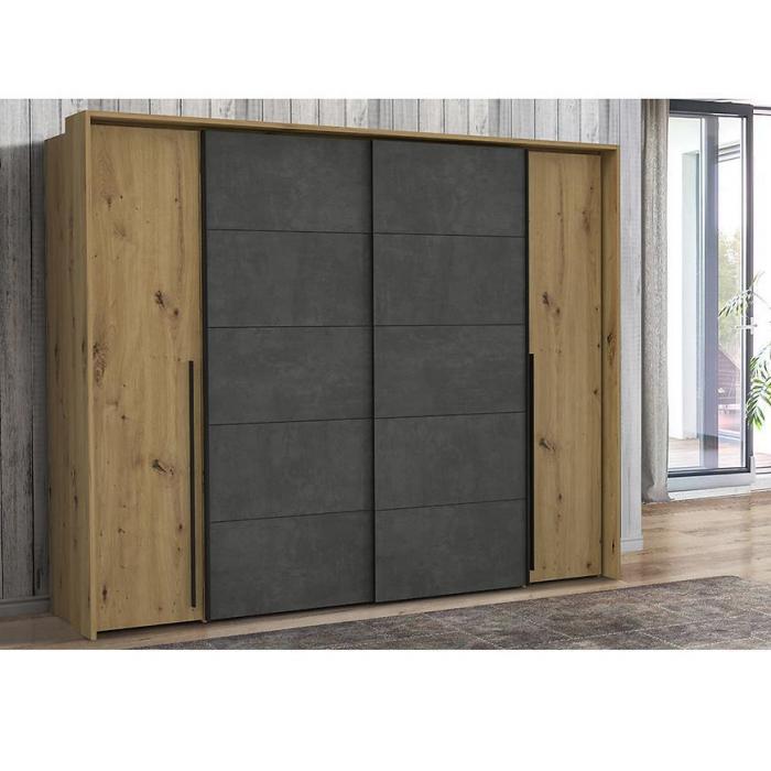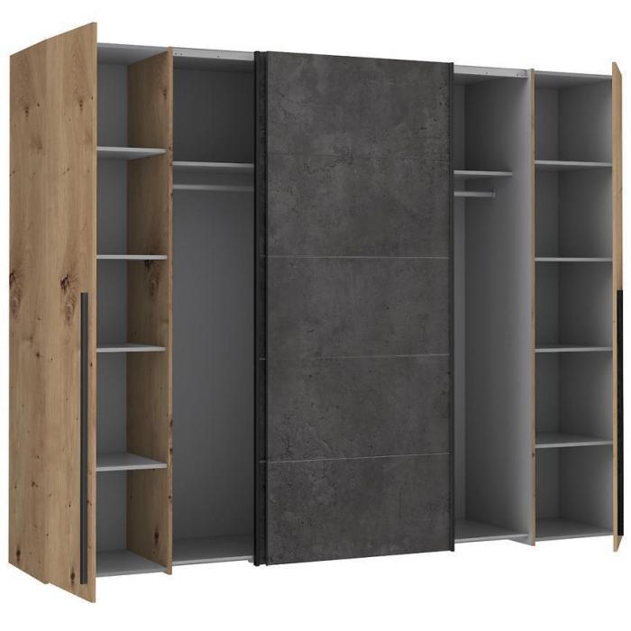 Szafa przesuwna Narago to praktyczny mebel do sypialni czy przedpokoju, może posłużyć również jako garderoba. Kolor mebla wpasuje się w wiele aranżacji. Mebel będzie pasował do wnętrz klasycznych jak również do wnętrz nowoczesnych. To duża szafa, która posiada półki oraz drążki do wieszania ubrań, na których powiesisz nawet długie ubrania. Pojemna szafa to dobre rozwiązanie, żeby schować to czego potrzebujesz. Szafa sprawdzi się z pewnością w danym pomieszczeniu. Listwa okalająca - dodatkowo płatna.