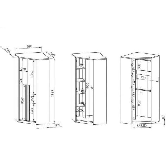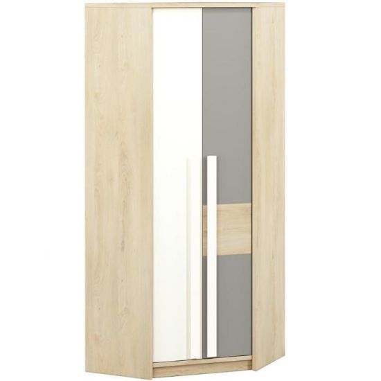 Drop to szafa narożna z uchylnymi drzwiami, półkami oraz drążkiem do wieszania ubrań, na którym powiesisz nawet długie ubrania. Pojemna szafa to dobre rozwiązanie, żeby schować to czego potrzebujesz. Do szafy na ubrania można dokupić inne meble z kolekcji Drop.