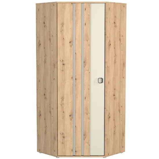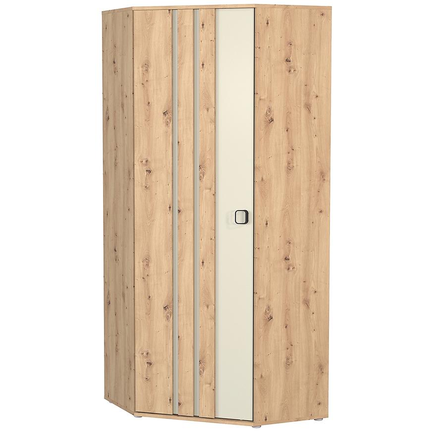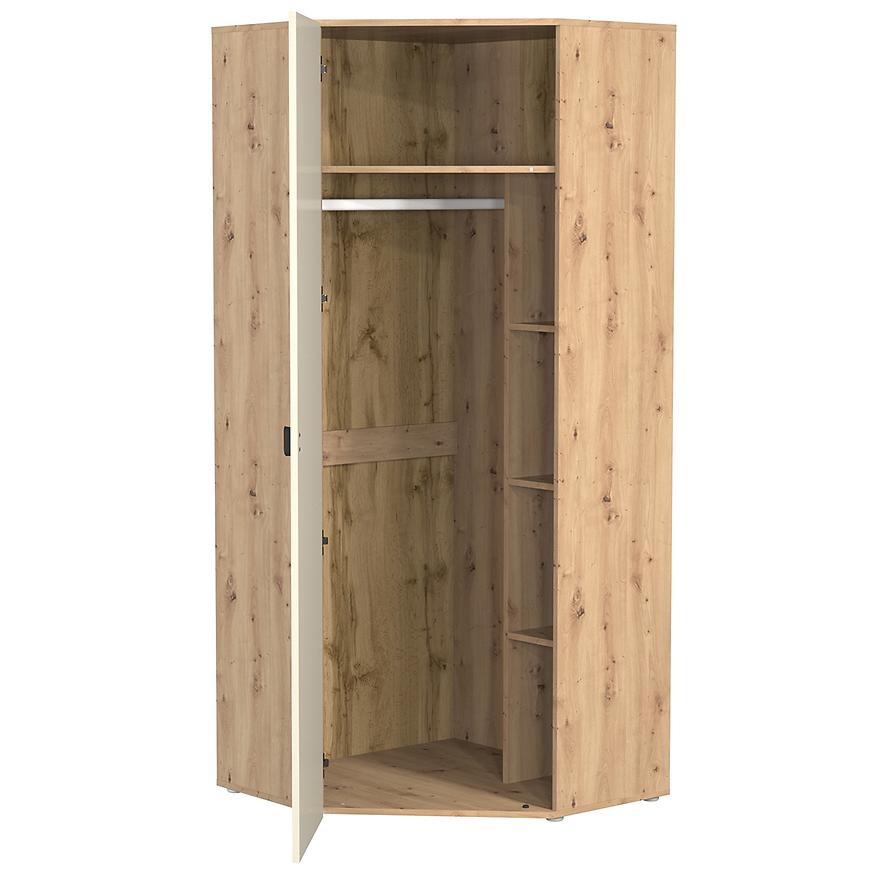 Szafa Narożna 1D Camari Dąb Artisan/Cashmere to eleganckie i funkcjonalne rozwiązanie dla wnętrz, które wymagają maksymalnego wykorzystania przestrzeni. Dzięki swoim kompaktowym wymiarom 194,5 cm wysokości oraz szerokości i głębokości po 82 cm, świetnie sprawdzi się w narożnikach pomieszczeń, tworząc pojemną przestrzeń do przechowywania w trudno dostępnych miejscach. Prosta, nowoczesna konstrukcja oraz modne wybarwienie w naturalnych odcieniach dębu artisan i kaszmiru nadają wnętrzu wyjątkowego charakteru i doskonale komponują się z innymi meblami z kolekcji CAMARO.