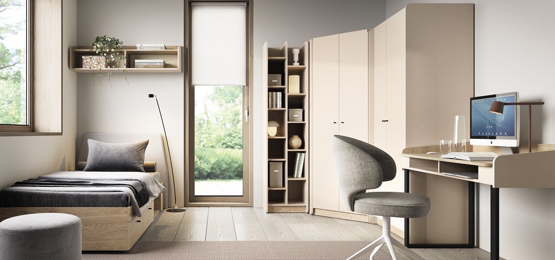 Jasny beż piaskowy w kolekcji Alessio wprowadza do pokoju młodzieżowego naturalne światło i przestronność. Meble Alessio można łatwo dopasować do różnych stylów wnętrz, tworząc przyjazną i inspirującą przestrzeń. Design kolekcji łączy nowoczesność z praktycznymi rozwiązaniami, umożliwiając komfortową naukę, zabawę i odpoczynek.