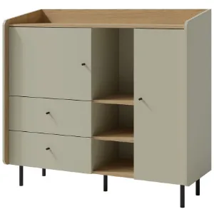 Kolekcja System Alessio eukaliptus obejmuje pojemne szafy młodzieżowe i funkcjonalne regały, które pozwalają na skuteczne przechowywanie ubrań, książek i przyborów szkolnych. Szafy wyposażone są w półki, szuflady i drążki na ubrania, co ułatwia utrzymanie porządku i organizację przestrzeni. Regały młodzieżowe łączą przestrzenie otwarte i zamknięte, umożliwiając zarówno ekspozycję dekoracji, jak i ukrycie niezbędnych przedmiotów codziennego użytku.