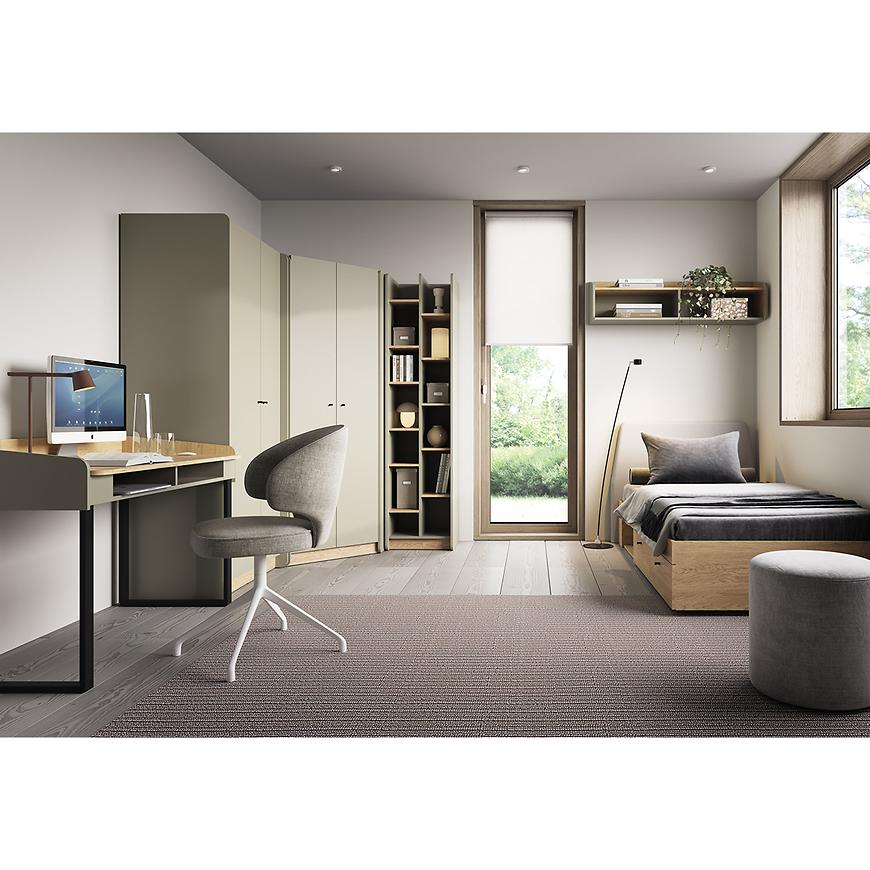 Zestaw System Alessio eukaliptus łączy estetykę z praktycznym zastosowaniem. Odcień eukaliptusa wprowadza do wnętrza świeżość i naturalny charakter, sprawiając, że pokój młodzieżowy staje się przyjazny i harmonijny. Meble Alessio łatwo dopasować do różnych stylów wnętrz, a ich nowoczesny design wspiera codzienną aktywność młodzieży – naukę, zabawę i relaks.