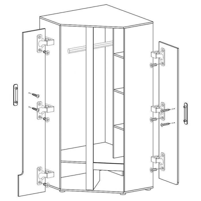 Apetito to szafa narożna z uchylnymi drzwiami, półkami oraz drążkiem do wieszania ubrań, na którym powiesisz nawet długie ubrania. Pojemna szafa to dobre rozwiązanie, żeby schować to czego potrzebujesz. Do szafy na ubrania można dokupić inne meble z kolekcji Apetito.