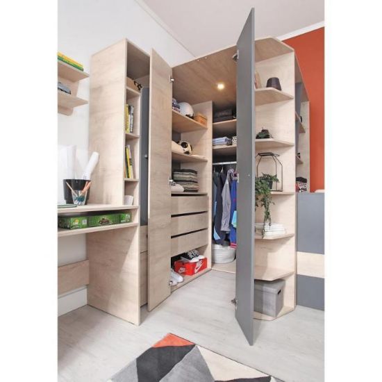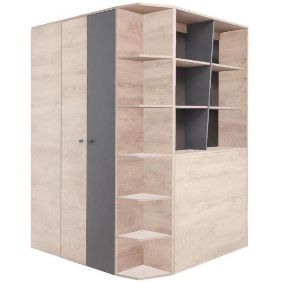 Szafa uchylna w kolorze dąb/antracyt z serii Delta to doskonała propozycja do pokoju dziecka, młodzieżowego, ale znajdzie swoje miejsce również w innym pomieszczeniu, jak na przykład - przedpokój czy garderobie. Materiał wykonania to płyta laminowana. Szafa posiada półki oraz drążek na ubrania. Mebel będzie świetnym miejscem do wieszania ubrań, na buty lub inne domowe tekstylia. Nowoczesny styl mebli wpadnie do gustu każdemu, kto poszukuje eleganckiego, klasycznego, a zarazem nowoczesnego umeblowania. Idealnie wpasuje się w większość aranżacji. W skład kolekcji wchodzą komody, regały, biurko, szafka rtv, półki oraz szafy. Przeznaczona do samodzielnego montażu.
