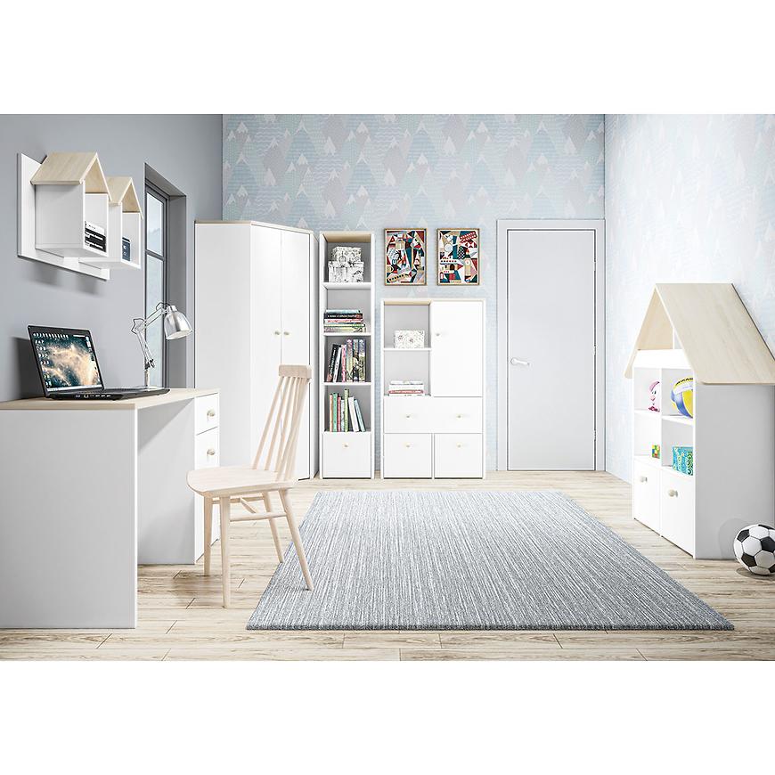 Zarówno fronty, jak i korpus szafywykonane są z płyty wiórowej laminowanej, co gwarantuje trwałość i odporność na uszkodzenia. Dzięki temu możesz być pewien, że Twój mebel posłuży Ci przez wiele lat. Jasne drewnopodobne wybarwienie korpusu wprowadzi do pomieszczenia ciepło i stworzy przytulną atmosfetę. To idealny kontrast do białych frontów, tworząc harmonijną całość.