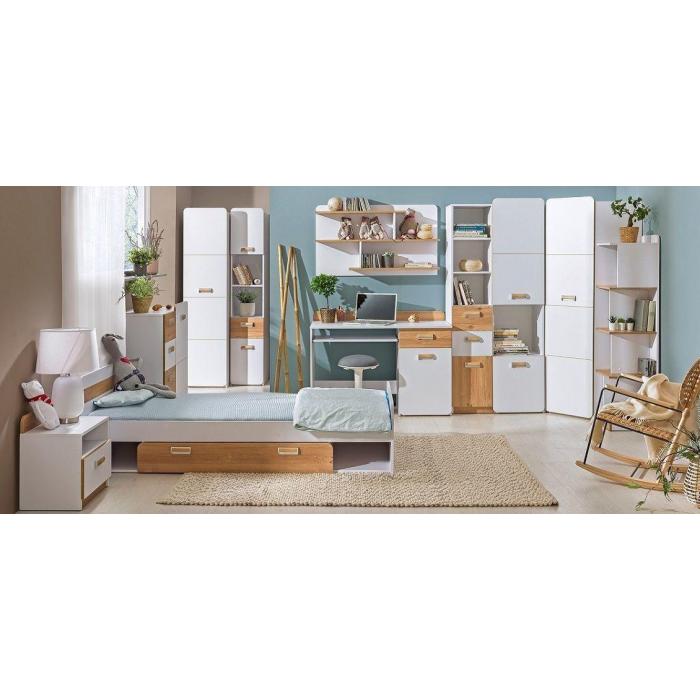 Szafa na ubrania Lorento to praktyczny mebel do pokoju młodzieżowego. Kolor mebla wpasuje się w wiele aranżacji. Mebel będzie pasował do wnętrz klasycznych jak również do wnętrz nowoczesnych. Lorento to szafa narożna z uchylnymi drzwiami, półką oraz drążkiem do wieszania ubrań, na którym powiesisz nawet długie ubrania. Pojemna szafa to dobre rozwiązanie, żeby schować to czego potrzebujesz. Do szafy na ubrania można dokupić inne meble z kolekcji Lorento.