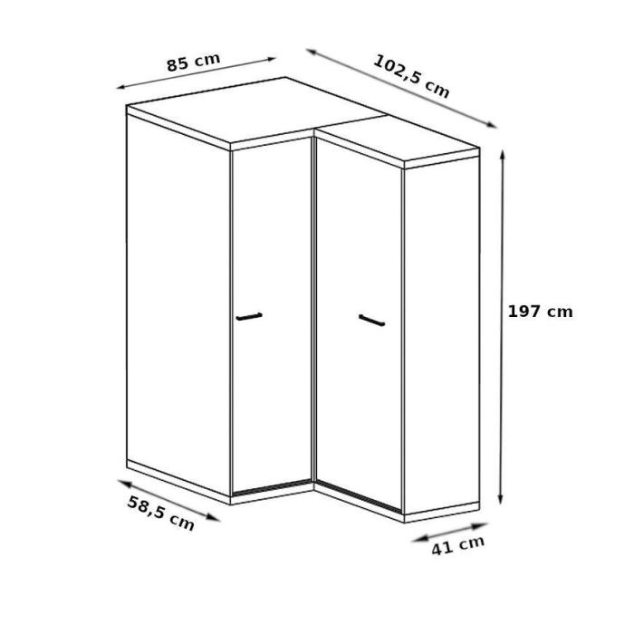 Szafa narożna Mediolan o szerokości 85/102 to propozycja do pokoju dziennego, ale znajdzie swoje miejsce również w innym pomieszczeniu, jak na przykład - przedpokój czy garderobie. Materiał wykonania to płyta laminowana. Szafa posiada półkę oraz drążek na ubrania. Nowoczesny styl mebli wpadnie do gustu każdemu, kto poszukuje eleganckiego, klasycznego, a zarazem nowoczesnego umeblowania. Idealnie wpasuje się w większość aranżacji. Przeznaczona do samodzielnego montażu.