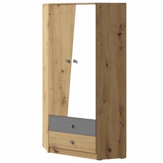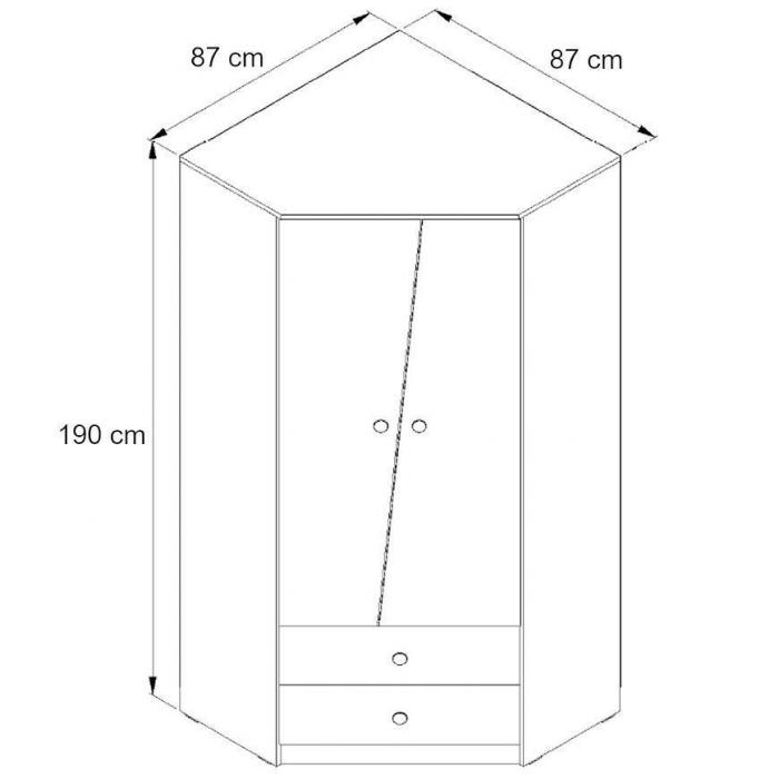 Szafa na ubrania Nero to praktyczny mebel do pokoju młodzieżowego. Kolor mebla wpasuje się w wiele aranżacji. Mebel będzie pasował do wnętrz klasycznych jak również do wnętrz nowoczesnych. Nero to szafa narożna dwudrzwiowa, która posiada półki, szuflady oraz drążek do wieszania ubrań, na którym powiesisz nawet długie ubrania. Pojemna szafa to dobre rozwiązanie, żeby schować to czego potrzebujesz. Do szafy na ubrania można dokupić inne meble z kolekcji Nero.