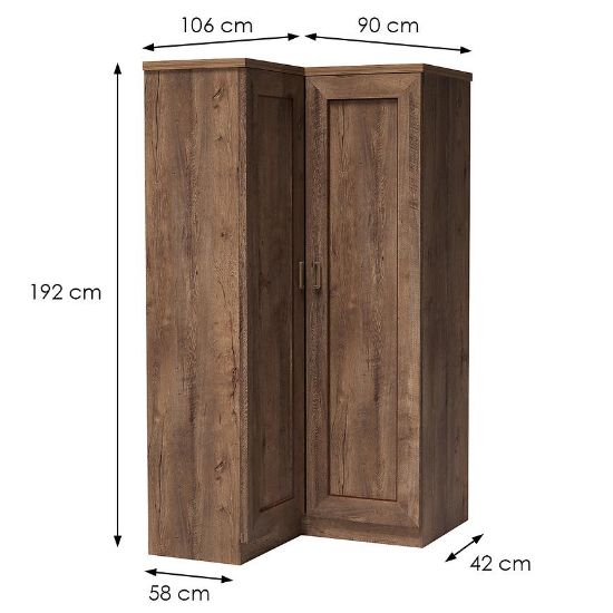 Szafa Tadeusz została zaprojektowana jako narożna, co oznacza, że doskonale wykorzystuje przestrzeń w rogu pomieszczenia. Dzięki temu, mebel ten jest idealnym rozwiązaniem dla tych, którzy chcą optymalnie zagospodarować dostępną przestrzeń. Szafa to nie tylko praktyczne rozwiązanie przechowywania, ale również element dekoracyjny. Jej elegancki wygląd i funkcjonalność sprawiają, że idealnie wpisuje się w różne wnętrza, takie jak sypialnia, salon czy garderoba.