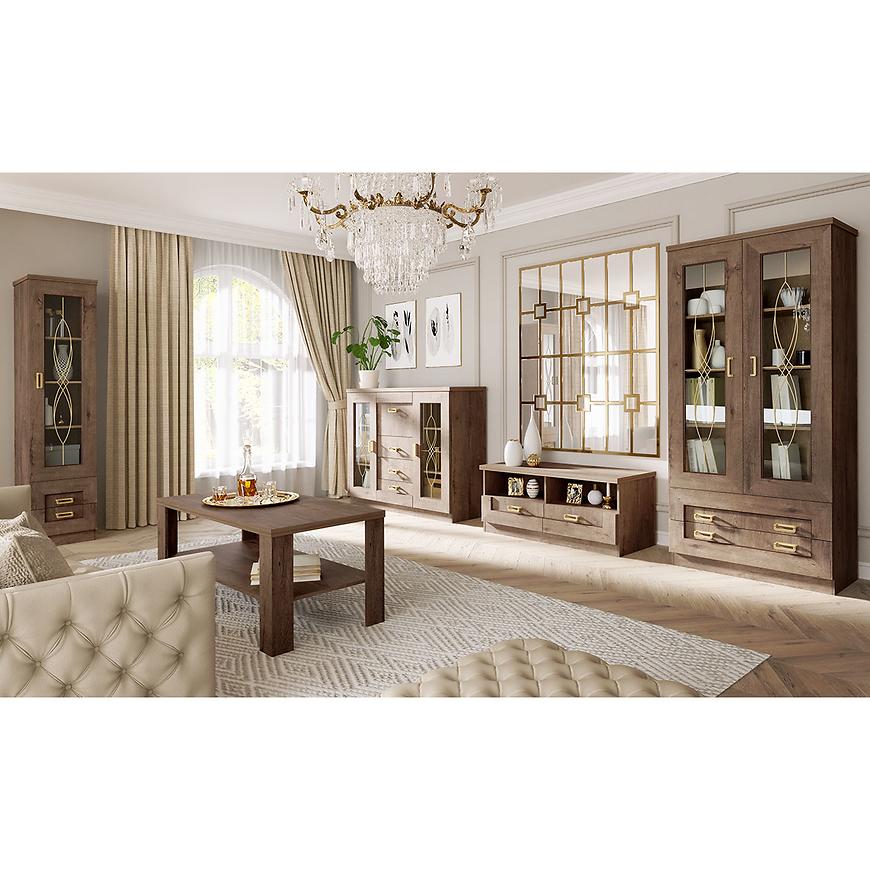 Klasyczne drzwi szafy Tadeusz podkreślają jej wyrafinowany charakter. Ich prosty, minimalistyczny design doskonale wpisuje się w klasyczne wzornictwo, dodając meblowi elegancji i harmonii. Kolor dębu lefkas nadaje szafie Tadeusz naturalny, ciepły odcień, który dodaje wnętrzu przytulności i elegancji. Ten kolor harmonizuje z różnymi stylami aranżacji wnętrz, dodając im naturalnego uroku. Wykończenie matowe szafy nadaje jej subtelnego wyglądu, podkreślając naturalną strukturę drewnopodobną. Matowa powierzchnia dodaje meblowi wyrafinowania i jednocześnie zapewnia ochronę przed zarysowaniami i śladami palców.
