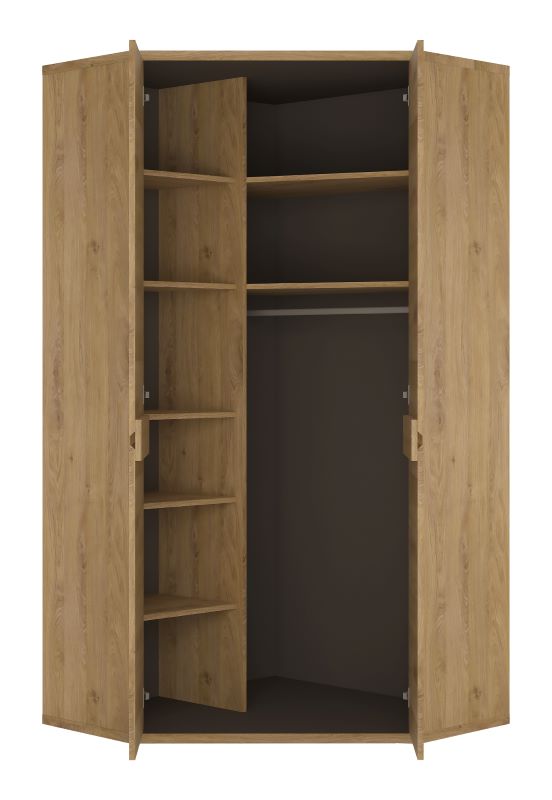 Neutralna kolorystyka dębu Shetland pozwala łatwo łączyć szafę z innymi meblami z kolekcji Shetland lub zestawiać ją z wyposażeniem w różnych stylach – od nowoczesnego minimalizmu, przez industrialny loft, po klasyczne, przytulne wnętrza. To sprawia, że szafa narożna staje się uniwersalnym elementem wyposażenia, który odnajdzie się w niemal każdym pomieszczeniu.