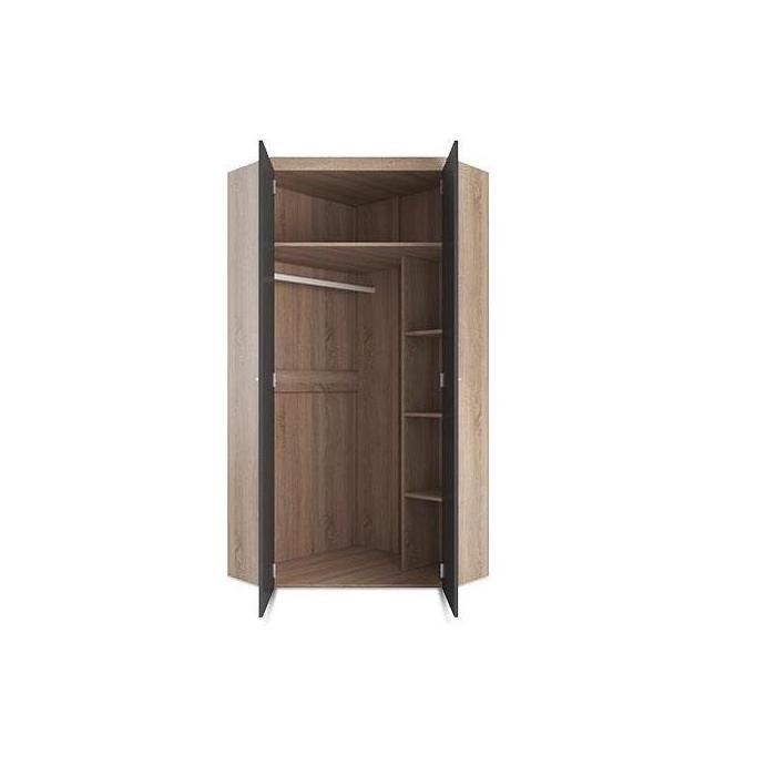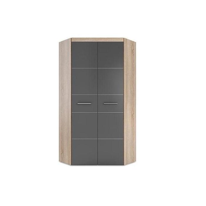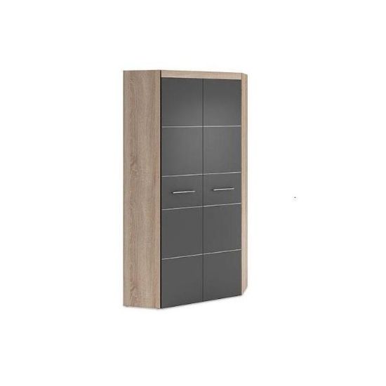 Szafa na ubrania Titto to praktyczny mebel do pokoju młodzieżowego. Kolor mebla dąb sonoma, antracyt wpasuje się w wiele aranżacji. Titto to szafa dwudrzwiowa narożna, która posiada półki oraz drążek do wieszania ubrań, na którym powiesisz nawet długie ubrania. Pojemna szafa to dobre rozwiązanie, żeby schować to czego potrzebujesz. Do szafy na ubrania można dokupić inne meble z kolekcji Titto.