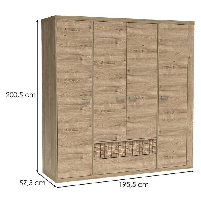 Szafa w kolorze ribbeck z kolekcji Natural to doskonała propozycja do pokoju dziennego, ale znajdzie swoje miejsce również w innym pomieszczeniu, jak na przykład - przedpokój czy garderobie, sypialni. Materiał wykonania to płyta laminowana. W środku szafa posiada półki. Wygląd szafy sprawi, że wpasuje się w większość aranżacji. Szafa będzie świetnym miejscem do wieszania ubrań, na buty lub inne domowe tekstylia. Ciekawym elementem dekoracyjnym jest drewniany, panel w kształcie szachownicy. Dzięki dodatkowemu oświetleniu LED tworzy ciekawą dekorację, eksponując nieregularną fakturę panela. Kolekcja z pewnością ociepli wnętrze, nadając mu jednocześnie przytulnego charakteru. Idealnie wpasuje się w większość aranżacji. Szafa przeznaczona do samodzielnego montażu.