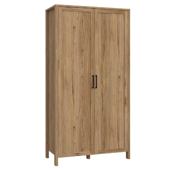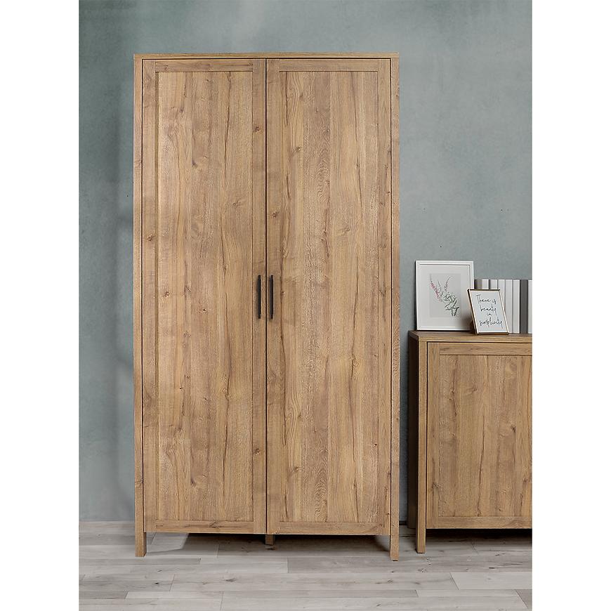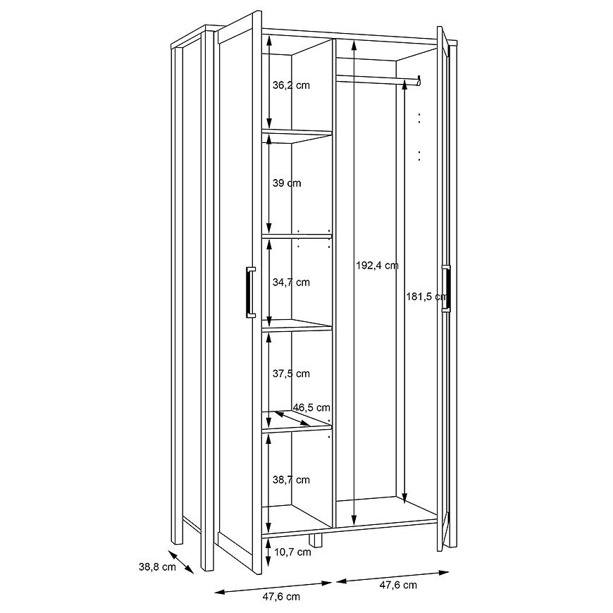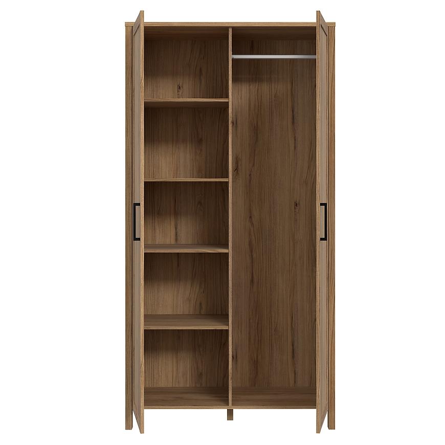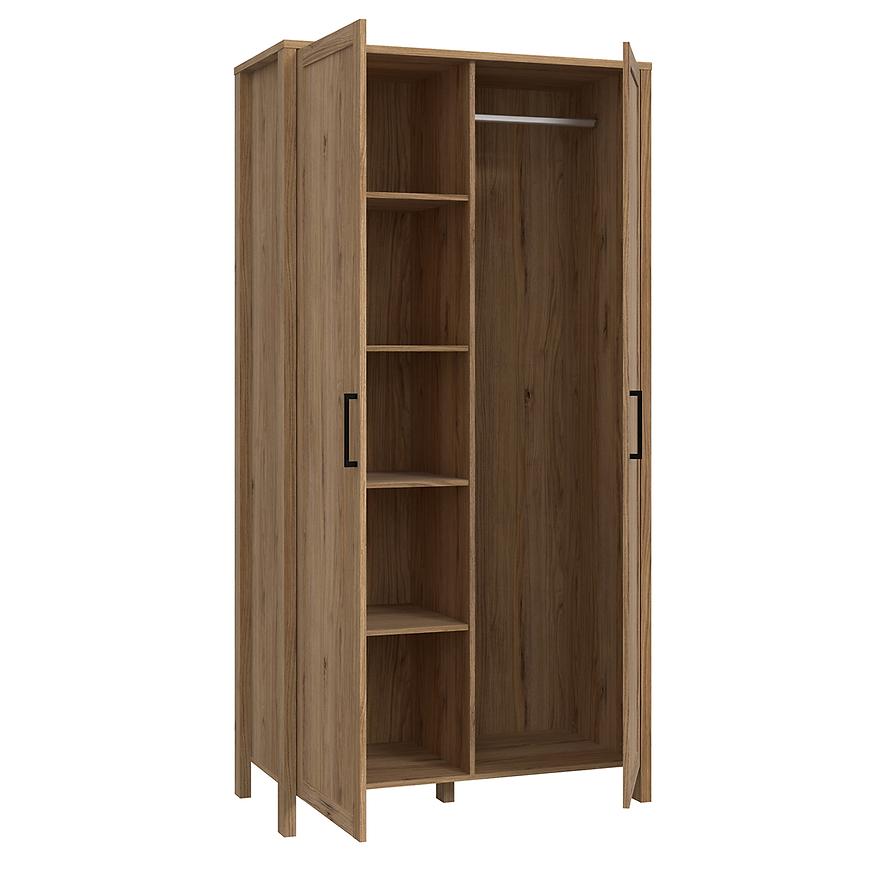 Szafa Nepean została starannie wykonana z płyty wiórowej laminowanej, co gwarantuje jej trwałość i odporność na uszkodzenia. Konstrukcja jest solidna i stabilna, a dwudrzwiowe rozwiązanie pozwala na przechowywanie różnorodnych przedmiotów, od odzieży po akcesoria czy inne rzeczy codziennego użytku.
