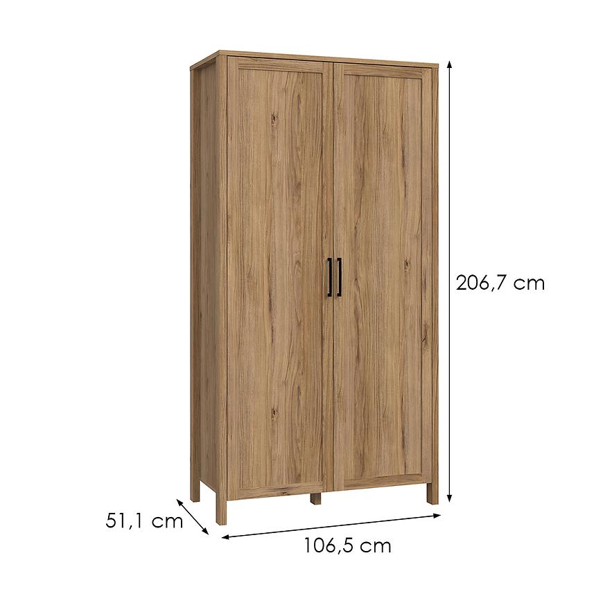 Szafa Nepean w kolorze Dąb Waterford to wyjątkowy mebel, który łączy w sobie funkcjonalność i estetykę rustykalnego designu. Szafa o wymiarach 106,5 cm szerokości, 206,7 cm wysokości i 51,1 cm głębokości zapewni Ci wystarczającą przestrzeń do przechowywania, jednocześnie dodając charakteru Twojemu wnętrzu.