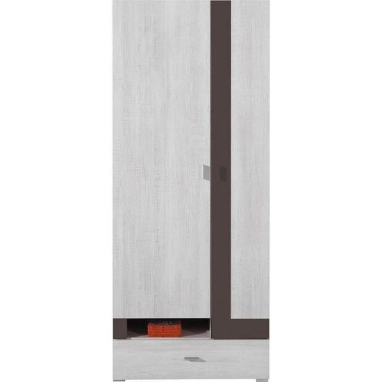 Szafa w kolorze sosna biała z kolekcji Next to doskonała propozycja do pokoju dziennego, ale znajdzie swoje miejsce również w innym pomieszczeniu, jak na przykład - przedpokój czy garderobie, sypialni. Materiał wykonania to płyta laminowana. Szafa posiada półki, drążek na ubrania oraz szuflady. Wygląd szafy sprawi, że wpasuje się w większość aranżacji. Szafa będzie świetnym miejscem do wieszania ubrań, na buty lub inne domowe tekstylia. Nowoczesny styl mebli wpadnie do gustu każdemu, kto poszukuje eleganckiego, klasycznego, a zarazem nowoczesnego umeblowania. Szafa przeznaczona do samodzielnego montażu.