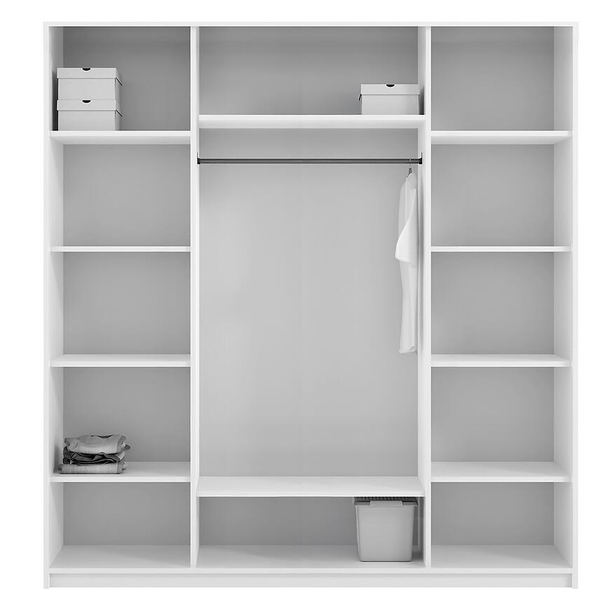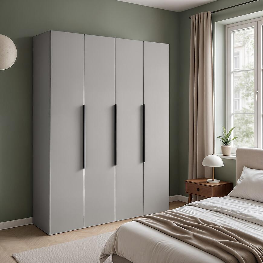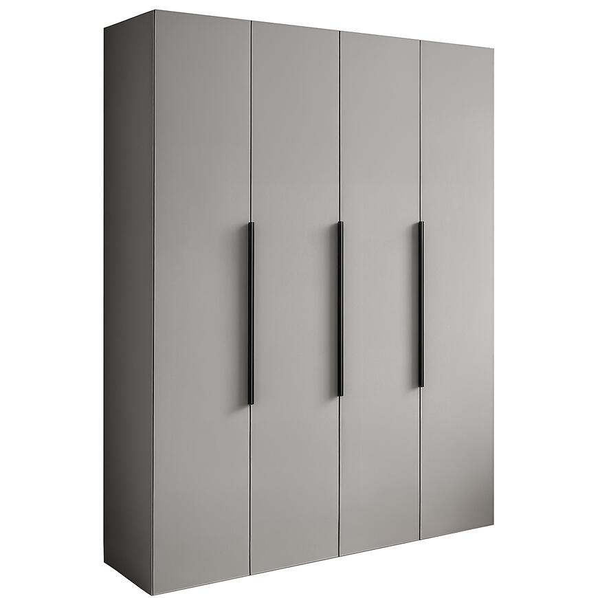 Szafa Nicea 180 szara to większa wersja kolekcji NICEA, idealna do nowoczesnych wnętrz. Ma wymiary 180×216×60 cm, co zapewnia przestronną powierzchnię do przechowywania ubrań i innych rzeczy. Posiada klasyczne kilkudrzwiowe fronty w eleganckim, matowym szarym wykończeniu, pasujące do całego korpusu. Wykonana z płyty laminowanej, łączy trwałość z nowoczesnym designem. Szafa waży 181 kg i wymaga samodzielnego montażu. Brak oświetlenia podkreśla minimalistyczny charakter mebla.