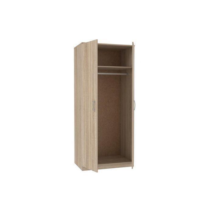 Szafa w kolorze dąb sonoma z kolekcji Niko to doskonała propozycja do pokoju dziennego, ale znajdzie swoje miejsce również w innym pomieszczeniu, jak na przykład - przedpokój czy garderobie, sypialni. Materiał wykonania to płyta laminowana. Szafa posiada półki i drążek na ubrania. Wygląd szafy sprawi, że wpasuje się w większość aranżacji. Szafa będzie świetnym miejscem do wieszania ubrań, na buty lub inne domowe tekstylia. Nowoczesny styl mebli wpadnie do gustu każdemu, kto poszukuje eleganckiego, klasycznego, a zarazem nowoczesnego umeblowania. Szafa przeznaczona do samodzielnego montażu.