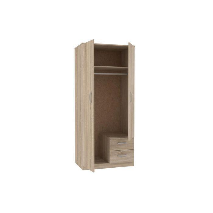 Szafa w kolorze dąb sonoma z kolekcji Niko to doskonała propozycja do pokoju dziennego, ale znajdzie swoje miejsce również w innym pomieszczeniu, jak na przykład - przedpokój czy garderobie, sypialni. Materiał wykonania to płyta laminowana. Szafa posiada półki i drążek na ubrania oraz szuflady. Wygląd szafy sprawi, że wpasuje się w większość aranżacji. Szafa będzie świetnym miejscem do wieszania ubrań, na buty lub inne domowe tekstylia. Nowoczesny styl mebli wpadnie do gustu każdemu, kto poszukuje eleganckiego, klasycznego, a zarazem nowoczesnego umeblowania. Szafa przeznaczona do samodzielnego montażu.
