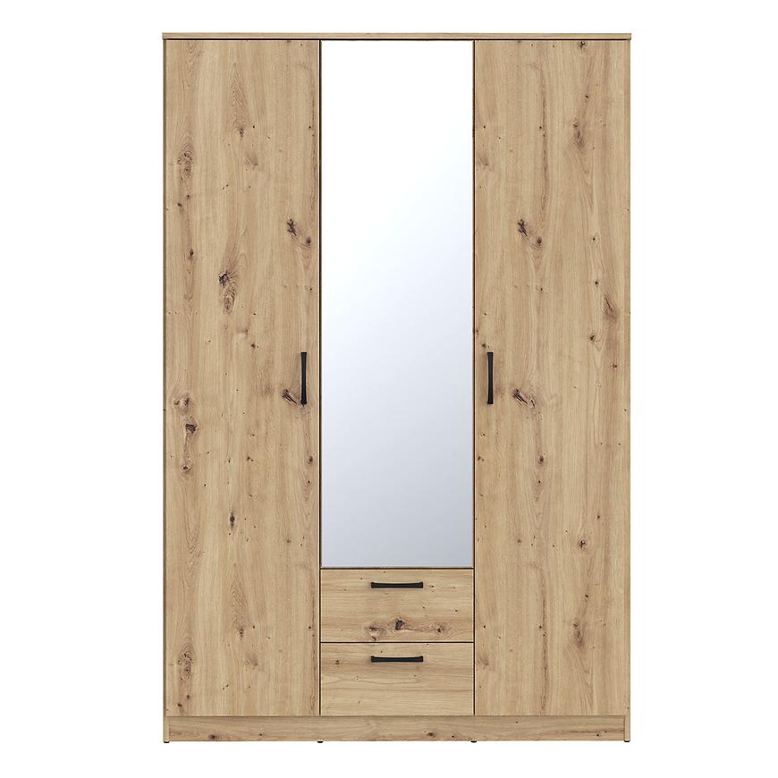 Niko to mebel utrzymany w klasycznym stylu, który pasuje do wielu różnorodnych aranżacji wnętrz. Wybarwienie w jasnym drewnopodobnym tonie, z frontami w eleganckim odcieniu dąb artisan, nadaje mu wyjątkowy urok. Zarówno fronty, jak i korpus wykonane są z wytrzymałej płyty wiórowej laminowanej, która gwarantuje trwałość i solidność. Matowa powłoka podkreśla elegancki, stonowany design.